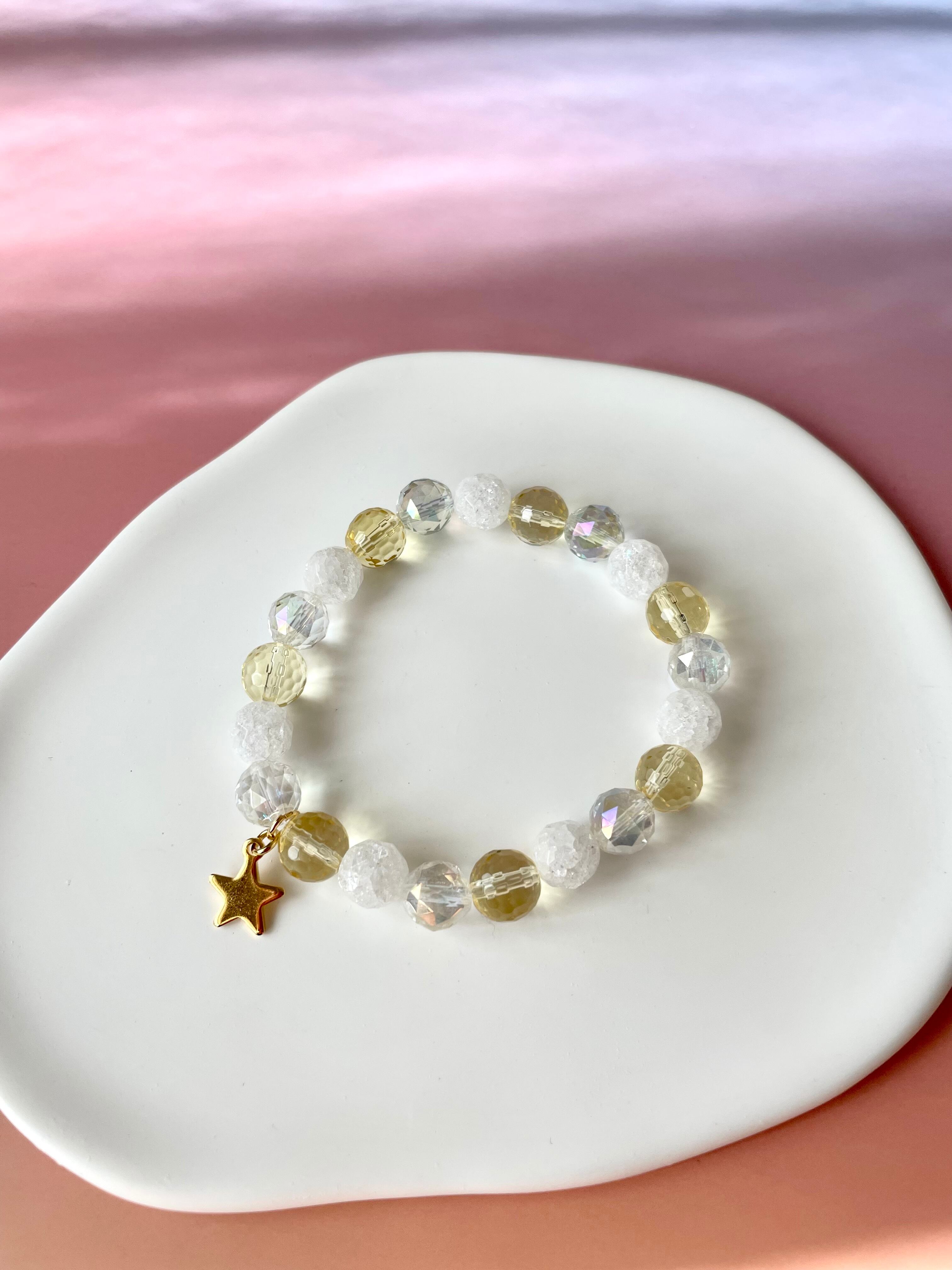 シトリン&クラッククォーツ&レインボーオーラ☆ブレスレット